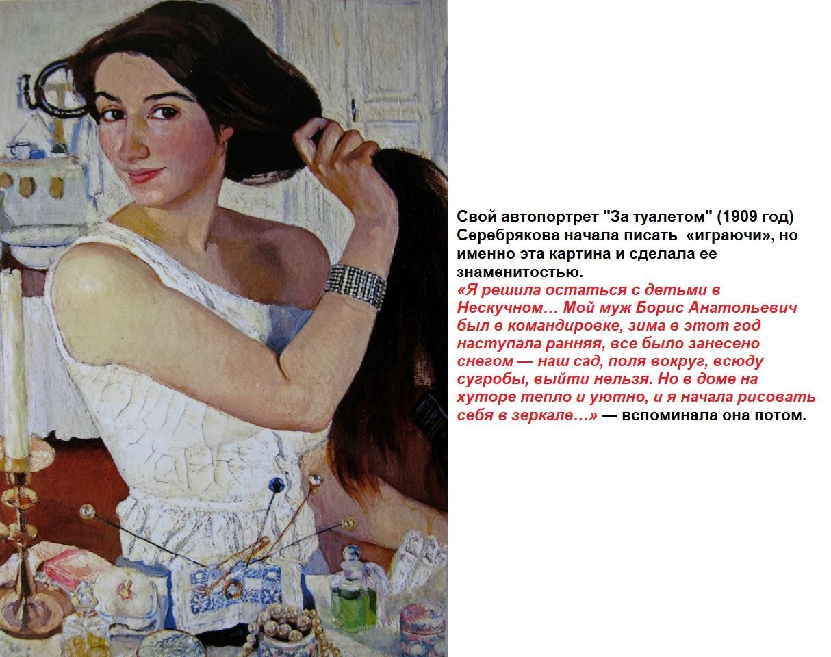 «Если бы по мотивам биографии Зинаиды Серебряковой сняли художественный фильм, это была бы пронзительная драма. Детство, омраченное ранней смертью отца и такая же ранняя смерть мужа. Выживание в послереволюционной России с четырьмя детьми на руках и последующая эмиграция во Францию, чтобы хоть как-то заработать средства на их содержание. Разлука с двумя из них длиною в полжизни, безвестность на чужбине и признание на родине, пришедшее лишь за год до кончины художницы — этого синопсиса достаточно для представления о том, какой насыщенный сценарий прописала для нее жизнь»Прекрасно передан жест героини, выражение лица, взгляд. Очень удалась работа!