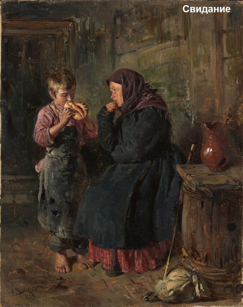 Я сначала тоже думала, что имя художника мне неизвестно. Но, рассматривая его работы, обнаружила две, знакомые со школьных времен. «Продажа крепостных» была иллюстрацией в учебнике истории, а «Свидание» - литературы. Так что Лебедев перешел в разряд друзей детства)))