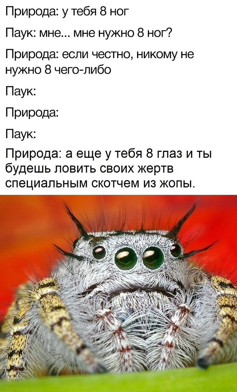 Да, паутинки утомляют. А паучков, видимо, отпугивает или съедает Катти. Я их не видел. Только однажды спустился один прямо перед носом на мой компьютерный стол. Я его , на его же паутинке, отправил на волю.))