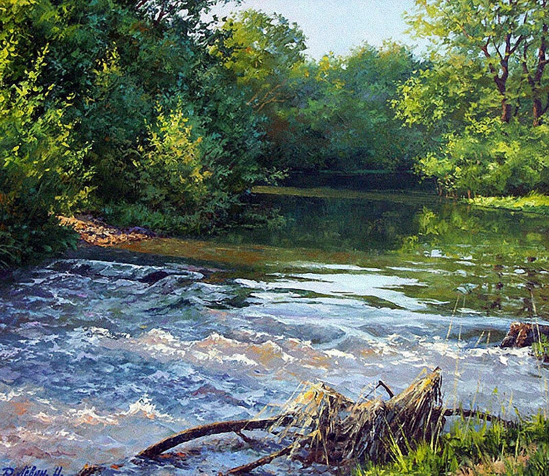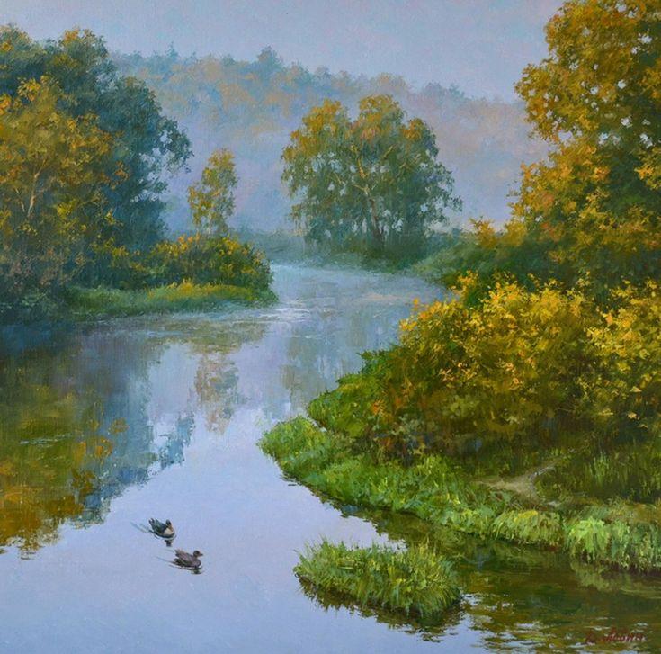 Отличный портрет современного художника-пейзажиста "деревенского" направления. Понравились его картины - много приятных, умиротворяющих работ.