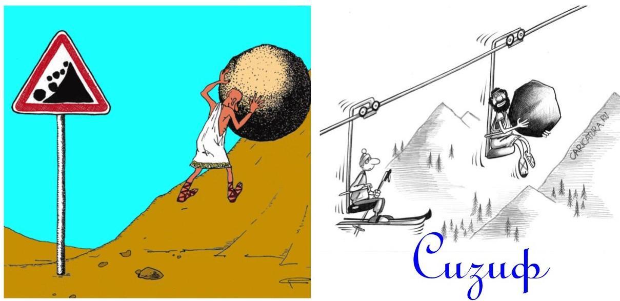 Сюжет хороший. Только голова у Сизифа квадратная. Поэтому он и трудится напрасно - не может найти рационального решения.
