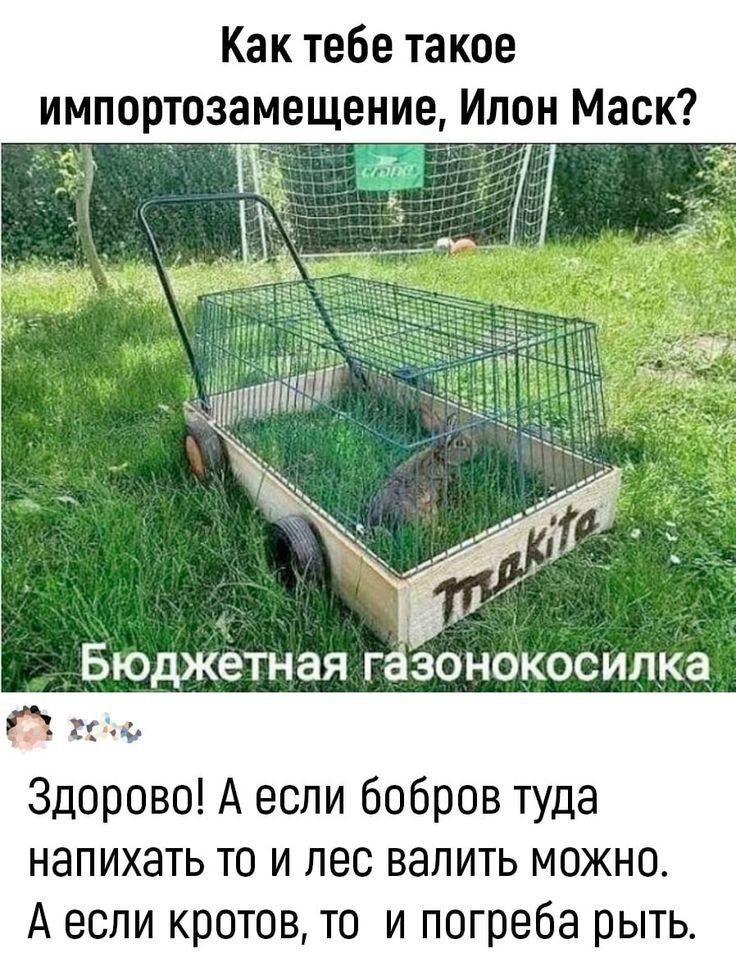 Шустрый малый, вприпрыжку косилкой одной рукой управляет.