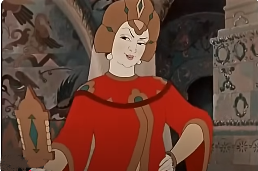 Если Вы не знаете сюжета могу пояснить что это мачеха, которая должна отравить царевну.