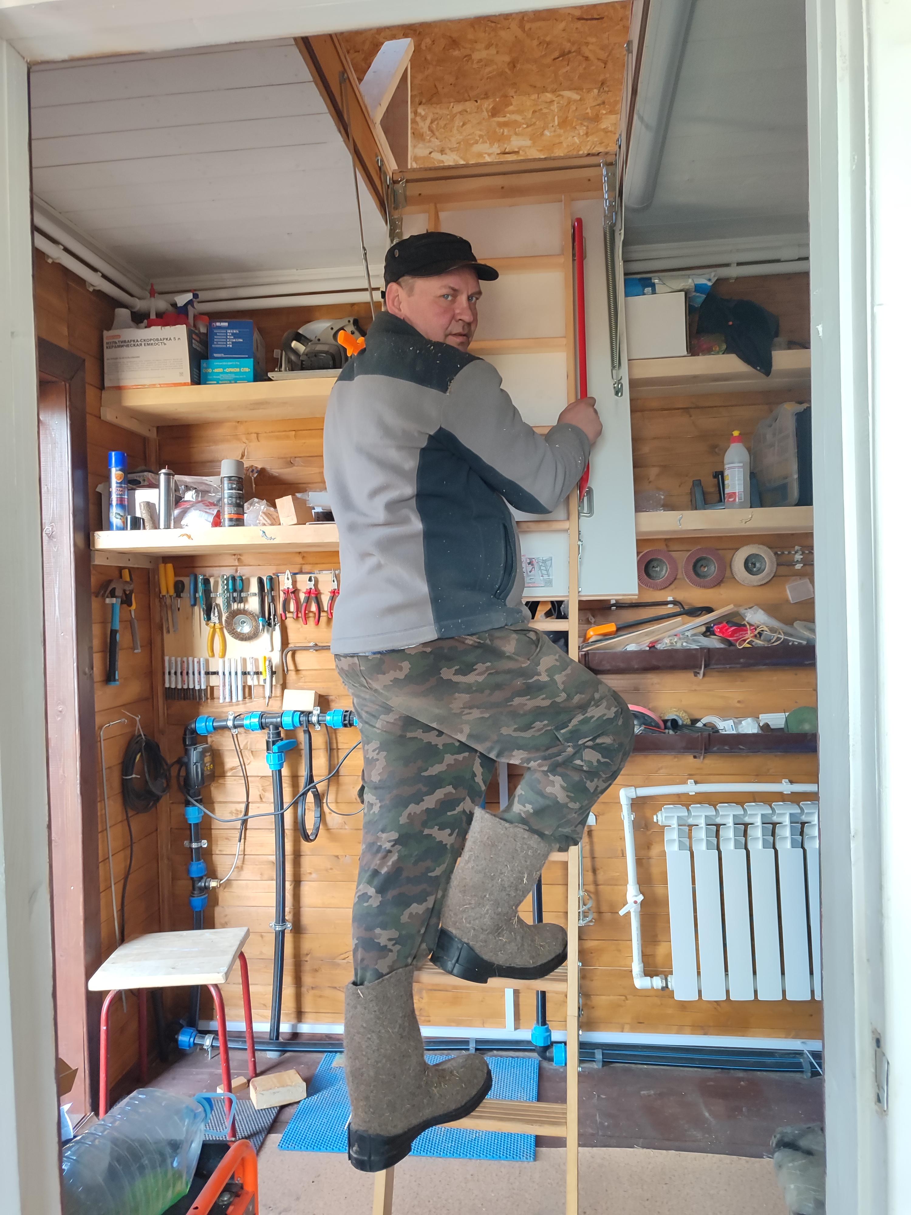 ответитьИз подсобки на чердак. Лестница довольно изящная, даже как-то доверия не внушает. То ли дело в деревнях ладят из двух толстых жердей, на которых параллельные рейки набиты гвоздями строительными ))
