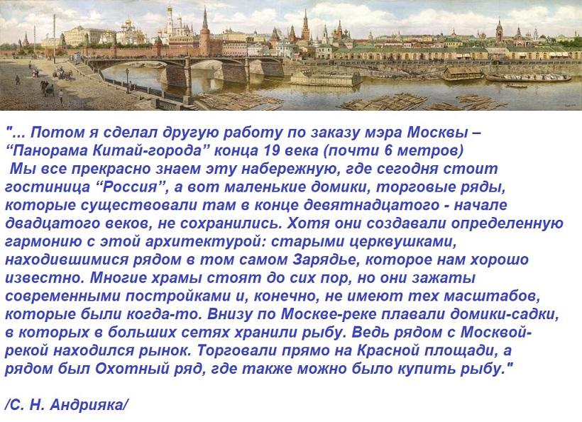 Когда в начале 70-х строили новые дома и сносили старые - это происходило на его глазах. Но эта «старина» навсегда осталась в его памяти, а потом он перенес свои юношеские впечатления в чудесные акварели, которые сохранили и для нас образ старой Москвы.