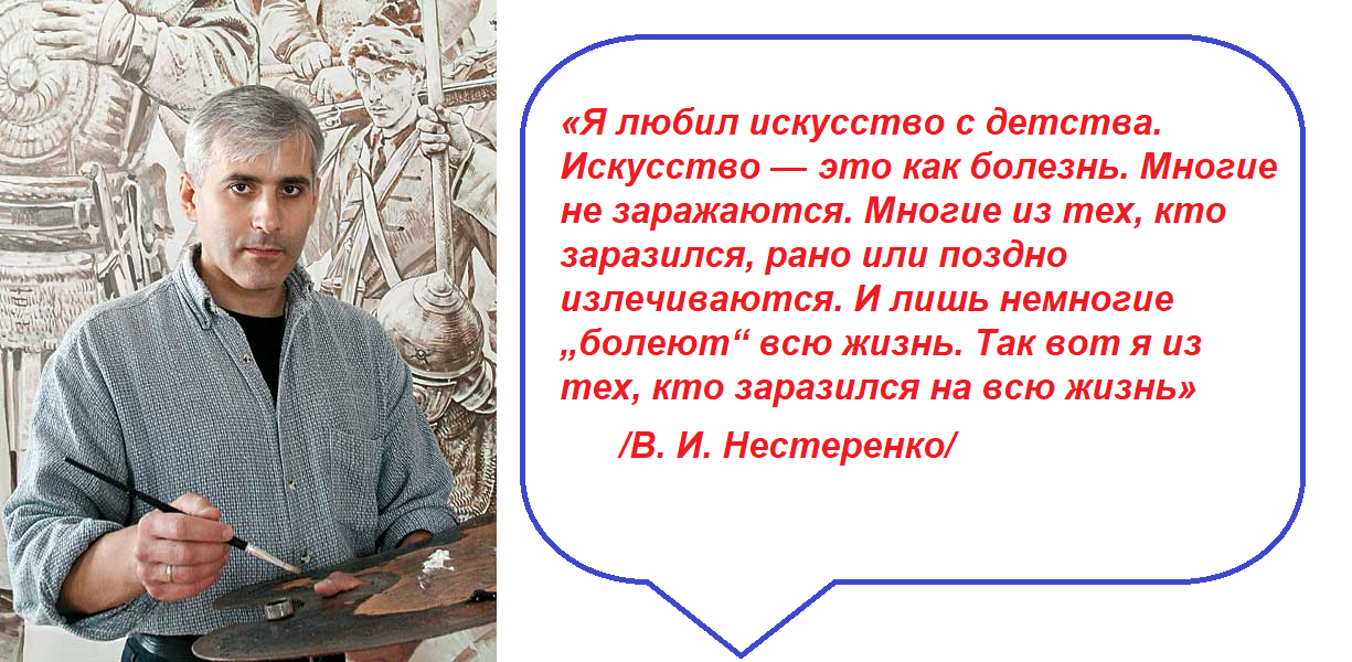 Василий Нестеренко — ведущий мастер современной российской живописи. Народный художник России, действительный член Российской академии художеств, лауреат премии «За верность исторической правде».Я в восхищении от творчества этого художника. И лицо получилось прекрасно - красивое и вдохновенное.