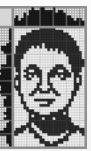Посмотрите на этот портрет, может на него больше похожа картинка кроссворда? Не нарисовал я очки, потому что они не вписывались в установленные рамки. Кое что пришлось добавить в результате борьбы с "не решаемостью". А женского в картинке я ничего и сейчас не вижу. Извините.