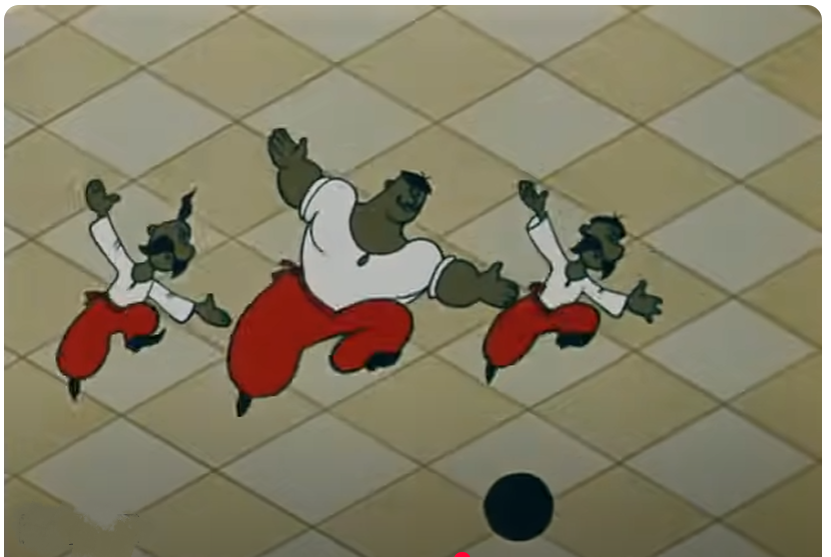Мне напомнило кадр из мультика "Как казаки в футбол играли" - та часть, где они, играя с французами, противопоставили галантному менуэту лихой гопак, - и сделали противника, как Бог черепаху)))