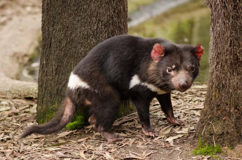 Сумчатое животное, распространен только на Тасмании. Его можно приручить, но не стоит раздражать - развоняетсятак, что мало не покажется. Ну,и орет дурным голосом))
