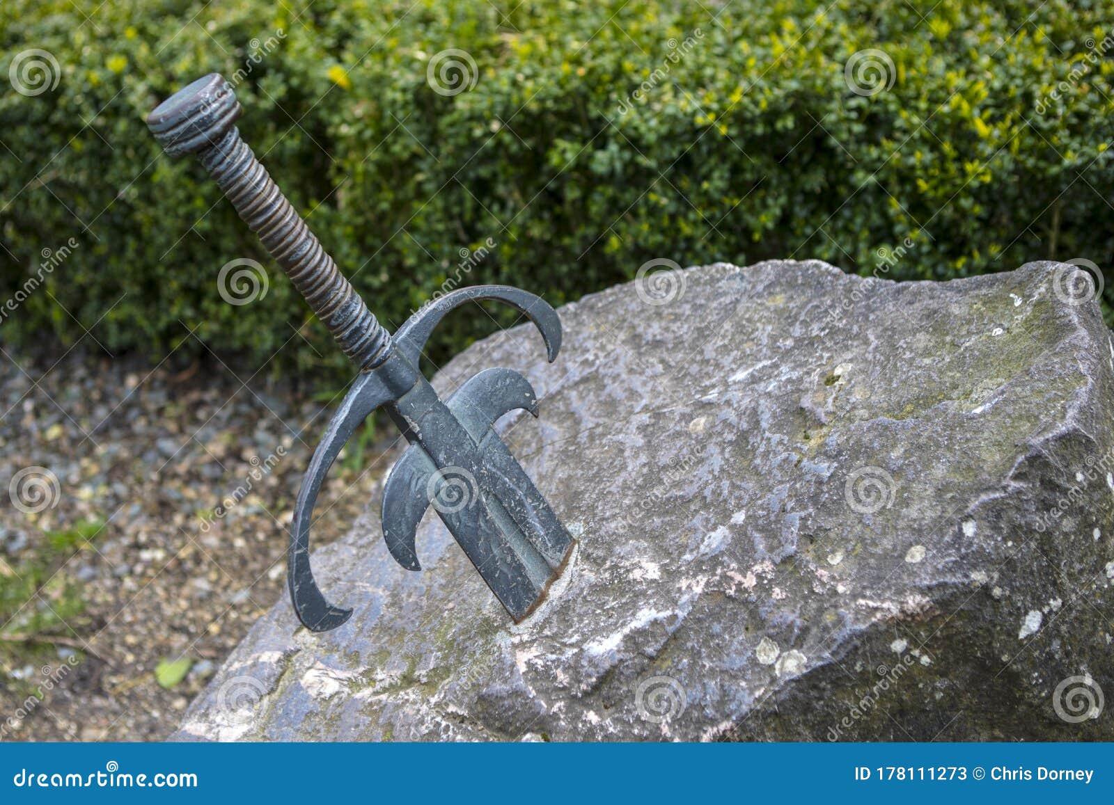 ответитьМерлин и епископ Кентерберийский в Лондоне представили собравшимся рыцарям «меч в камне» (меч лежал на каменной плите, способной плавать по воде, и был придавлен сверху наковальней; в поздней литературе он превратился в меч, воткнутый в камень); на камне была надпись: «Кто вытащит сей меч из-под наковальни, тот и есть по праву рождения король над всей землёй английской». Ни один из королей и баронов не смог извлечь меча. Его случайно вынул юный Артур, который искал меч своему названому старшему брату — сэру Кею. Мерлин раскрыл юноше тайну его происхождения и провозгласил Артура королём.