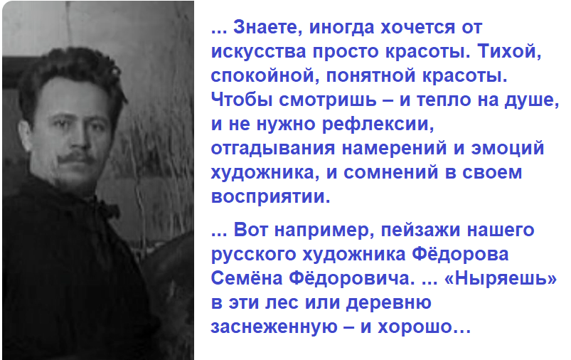 Семён Фёдорович Федоров - русский пейзажист невероятного таланта . Был известен среди современников в конце XIX — начале XX века как автор лесных пейзажей, написанных в традициях реалистической живописи второй половины XIX века.Пейзажи действительно необыкновенно хороши и умиротворяющи.
