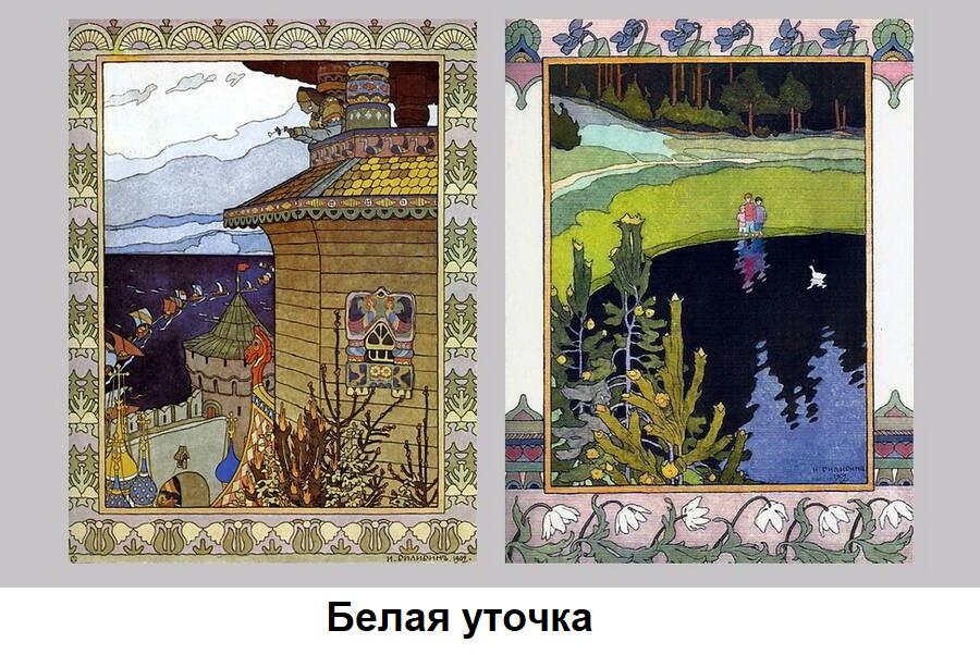 В 1899 году Билибин некоторое время живет в тверской деревне Егны. Именно они стали местом рождения Билибина как рисовальщика. Будучи под свежим впечатлением от васнецовских «Богатырей», он делает иллюстрации к русской народной «Сказке об Иван-царевиче, Жар-птице и о Сером волке». Притом в неожиданном, новом и именно сказочном стиле. Здесь нет особенного буйства красок. Напротив – цвета приглушенные, северные. У каждого рисунка – свой неповторимый орнамент. По этим орнаментам бегают волки, на них растут подсолнухи и мухоморы, каркают воронята.
