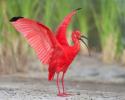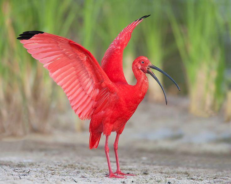 Голенастый аист фараонов, ибис из долины Нила. Среди них есть красавцы с алым опереньем , как и у фламинго. Цвет их оперенья зависит от красных рачков, богатых каротином, которыми они питаются.
