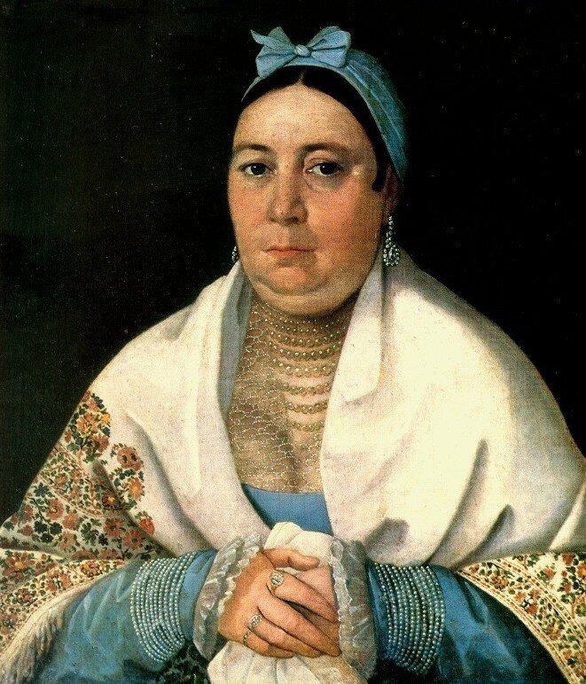 Его купчихи - без намека на улыбку, с настороженным взглядом, явно властные женщины с непростым характером. На них множество украшений, роскошные шали, но они меркнут на фоне уверенных лиц и этих глаз и пронизывающих взглядов этих женщин.