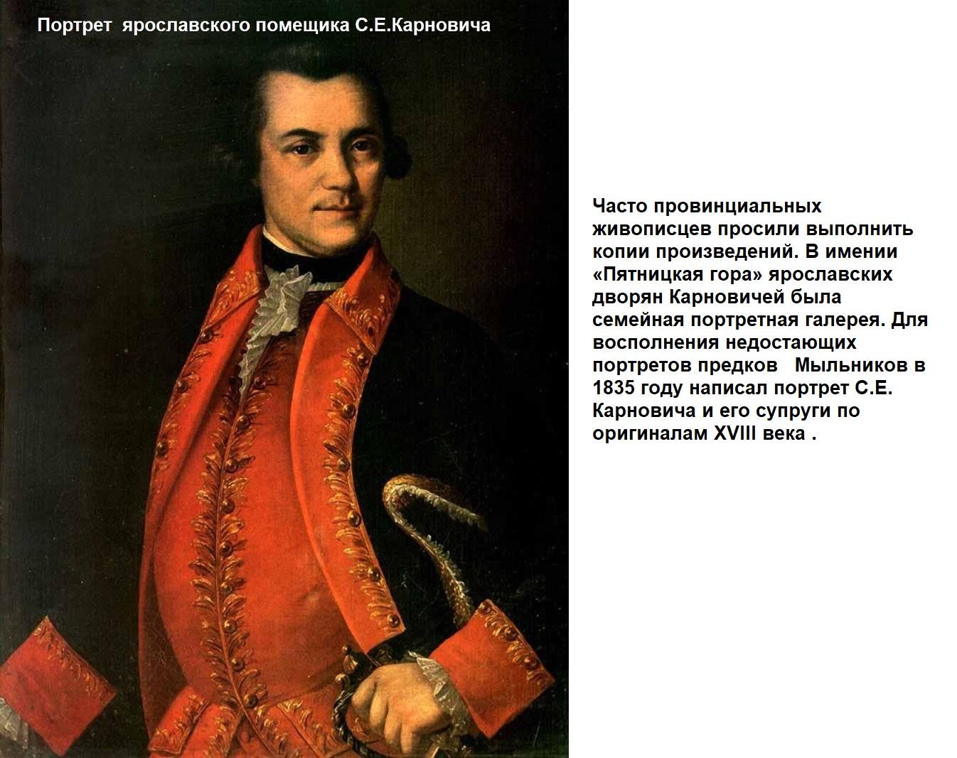 Он начинал как ремесленник, специализировавшийся на «купеческом портрете». Кажется, все ярославское купечество прошло через мастерскую Мыльникова—целые купеческие династии запечатлены на его полотнах. Брал н заказы и от дворян, окрестных помещиков и чиновников, но значительно реже.