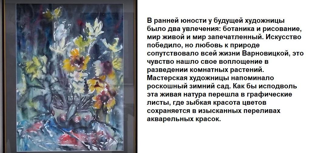 Изящество природных форм, запечатленных легкой и верной кистью, душевная хрупкость и чистота чувств в портретных образах — вот чем привлекают графические листы художницы Варновицкой. Творчество ее на протяжении многих лет посвящено двум жанрам: портрету и натюрморту, хотя начинала она как иллюстратор.Очередная подлянка интернета: в кроссе – не портрет художницы, а один из ее персонажей, представленный на картине «Москвичка». А портрета самой Варновицкой я так и не нашла. Но опять-таки не страшно – отличный кросс и портрет от этого хуже не стали)))