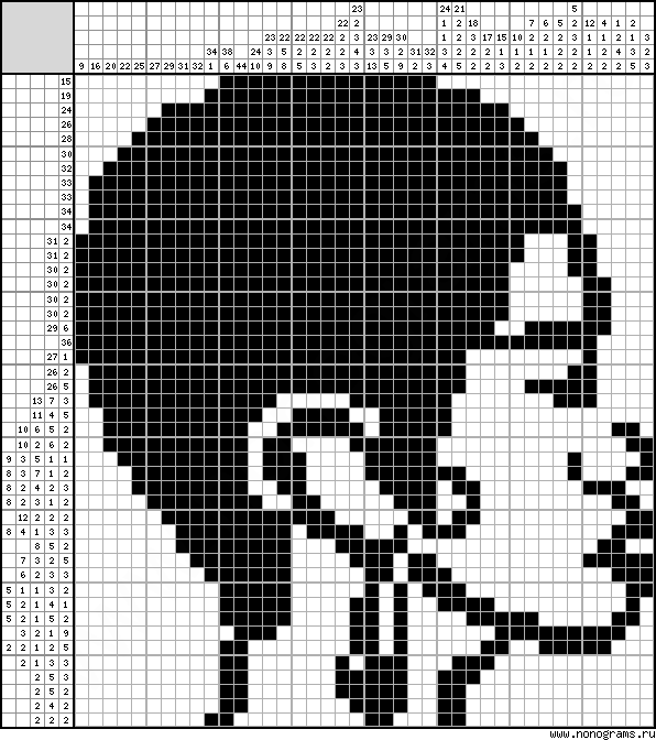 А формат поменьше - никак? Так много "краски" ушло на прическу, что делает нонограм скучнее