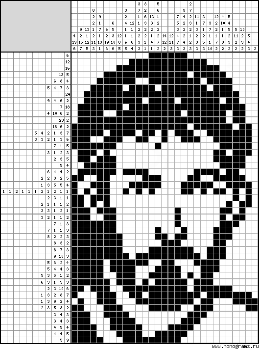 ответитьСпасибо. Хороший художник, судя по его работам. Мне нравится. Нонограмма приличной схожести с автопортретом (см. вкладку). Сложность нонограммы минимальная, проще только Луку рисовать.