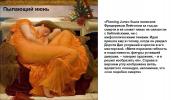 Жизнь мастера викторианской эпохи, который любил рисовать роскошных рыжеволосых красавиц и волооких римлянок, была богата взлётами и падениями. Достаточно сказать, что под конец жизни Лейтон был удостоен титула барона, но насладиться высоким положением не успел: по грустной иронии судьбы умер на следующий день. Да и капризная Фортуна была переменчива: при жизни картины британского живописца были популярными и ценились очень дорого, а после его смерти их постигло забвение на многие десятилетия.