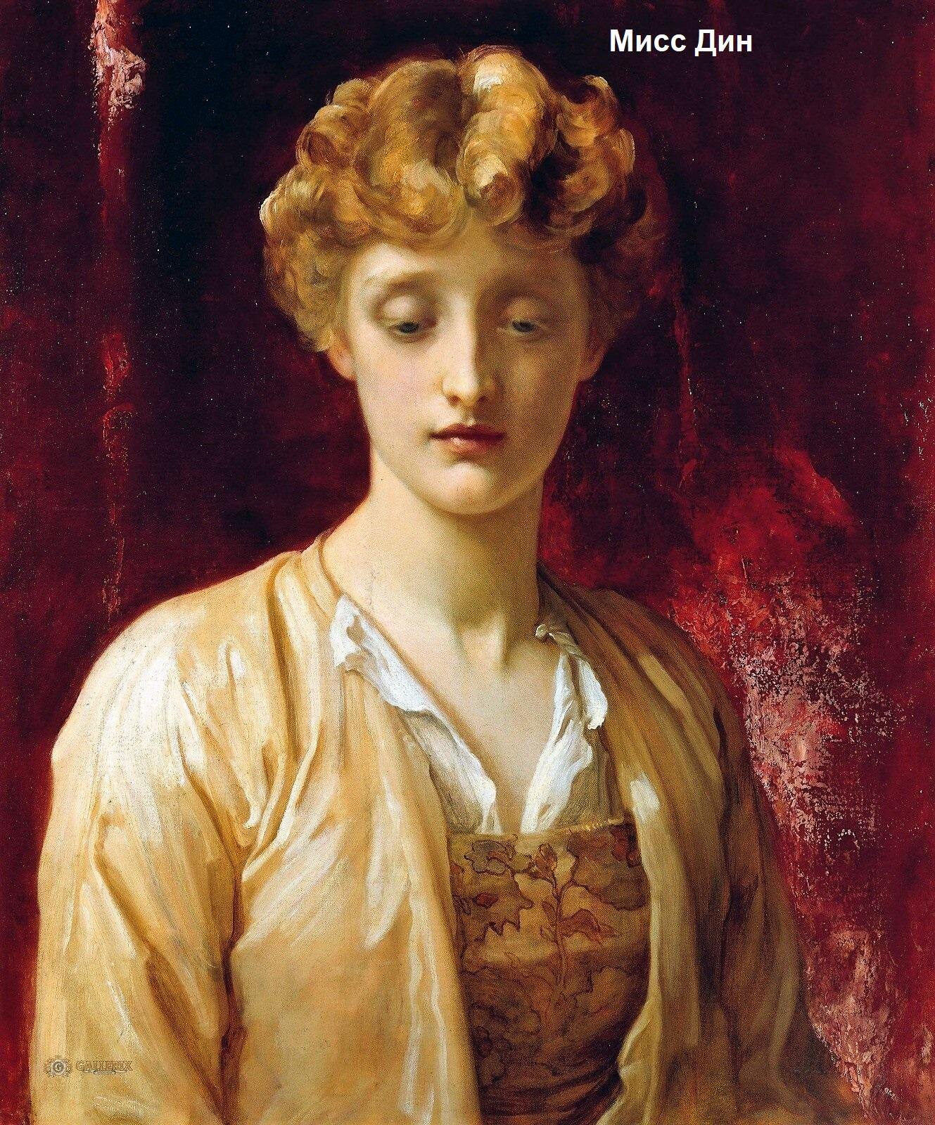 Но особенные чувства связывали Лейтона с Адой Пуллен, получившей известность под сценическим псевдонимом Дороти Дин. В момент их знакомства на одном из сеансов мастеру было 48, а юной модели – 20. Именно Лейтон помог девушке изучить актёрское мастерство и способствовал началу сценической карьеры, он же придумал для неё псевдоним Дороти Дин. Разница в возрасте и социальном статусе художника и модели вызывали много сплетен и кривотолков, но репутация Лейтона была непоколебима и он оставался «образцом нравственности в высшем обществе». Прелестная Дороти Дин присутствует на многих его картинах, в том числе – знаменитом «Пылающем июне» (См. фото 16)