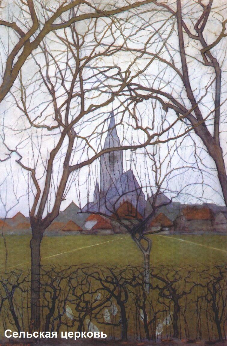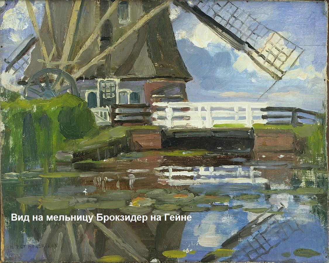 В 25 Мондриан вернулся в родительский дом, написал серию картин ( в основном пейзажей Винтерсвейка) и акварелей. Ни в какой мере не абстрактных – импрессионистких и постимпрессионистких. (Ранний Мондриан придерживался консервативных традиций) Но все время искал свой собственный стиль.
