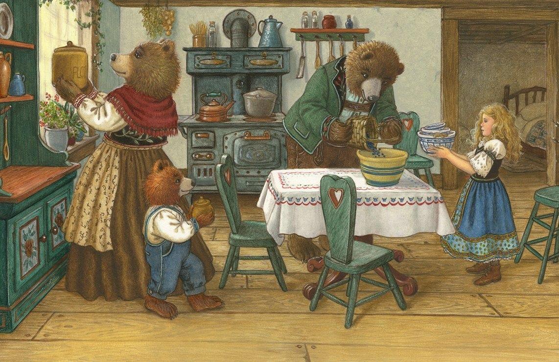 "Златовласка и три медведя" - новой версии классической сказки, в которой Златовласка, заглаживая свою вину за бесцеремонное вторжение в дом трёх медведей, ликвидирует все созданные ею безобразия, а после помогает хозяевам печь кексы с черникой, собранной ею в лесу.