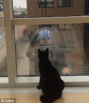 А кот просто опасается, как бы не войти не в ту дверь...)))