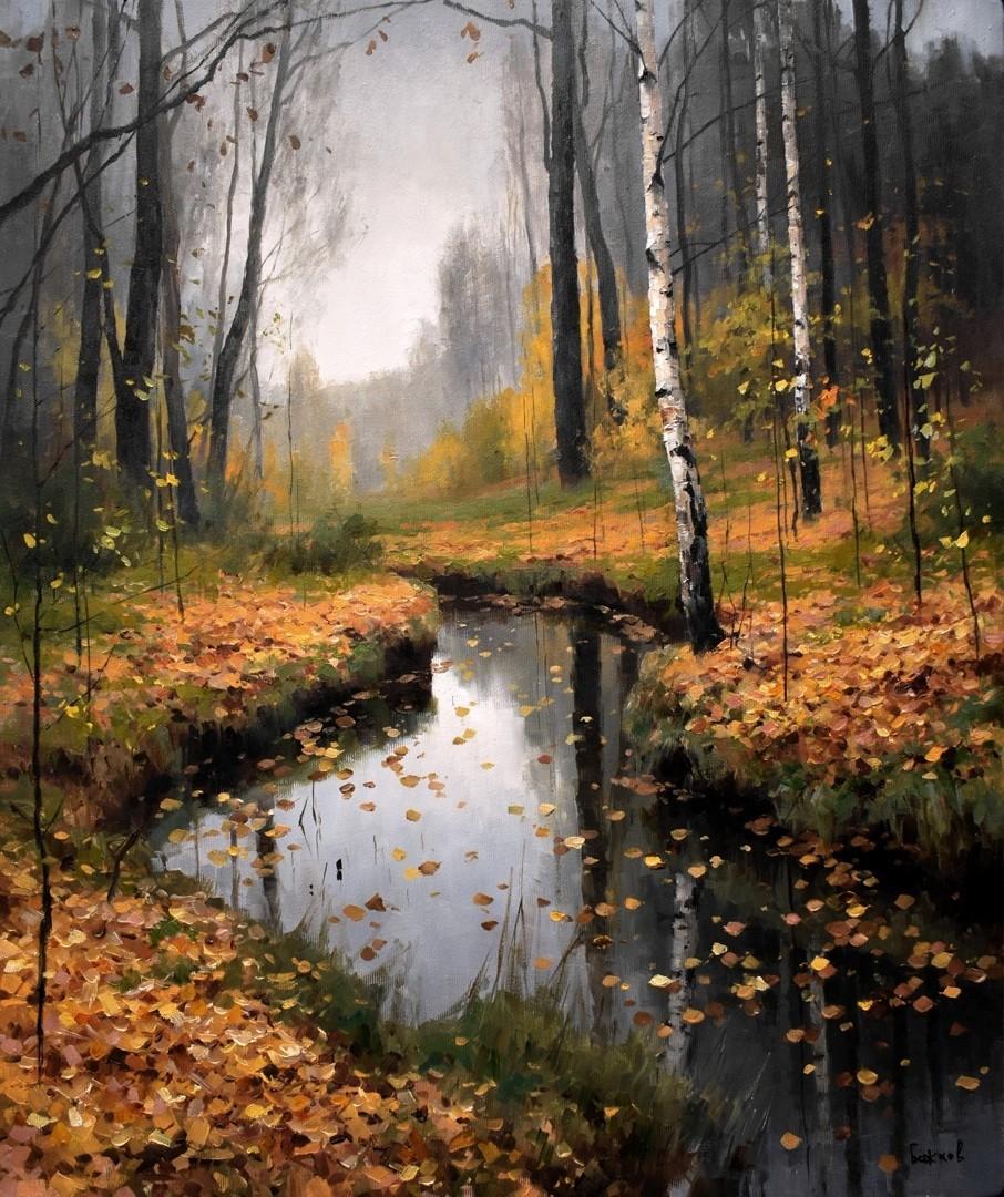 Для работ этого живописца одним объединяющим словом является пронзительность. Которая наряду с игрой света делает его пейзажи особенными. Роман любит писать с натуры, на природе. Это позволяет максимально точно передать тона и полутона, поймать нужный свет, уловить настроение одного дня и момента, который никогда больше не повторится.