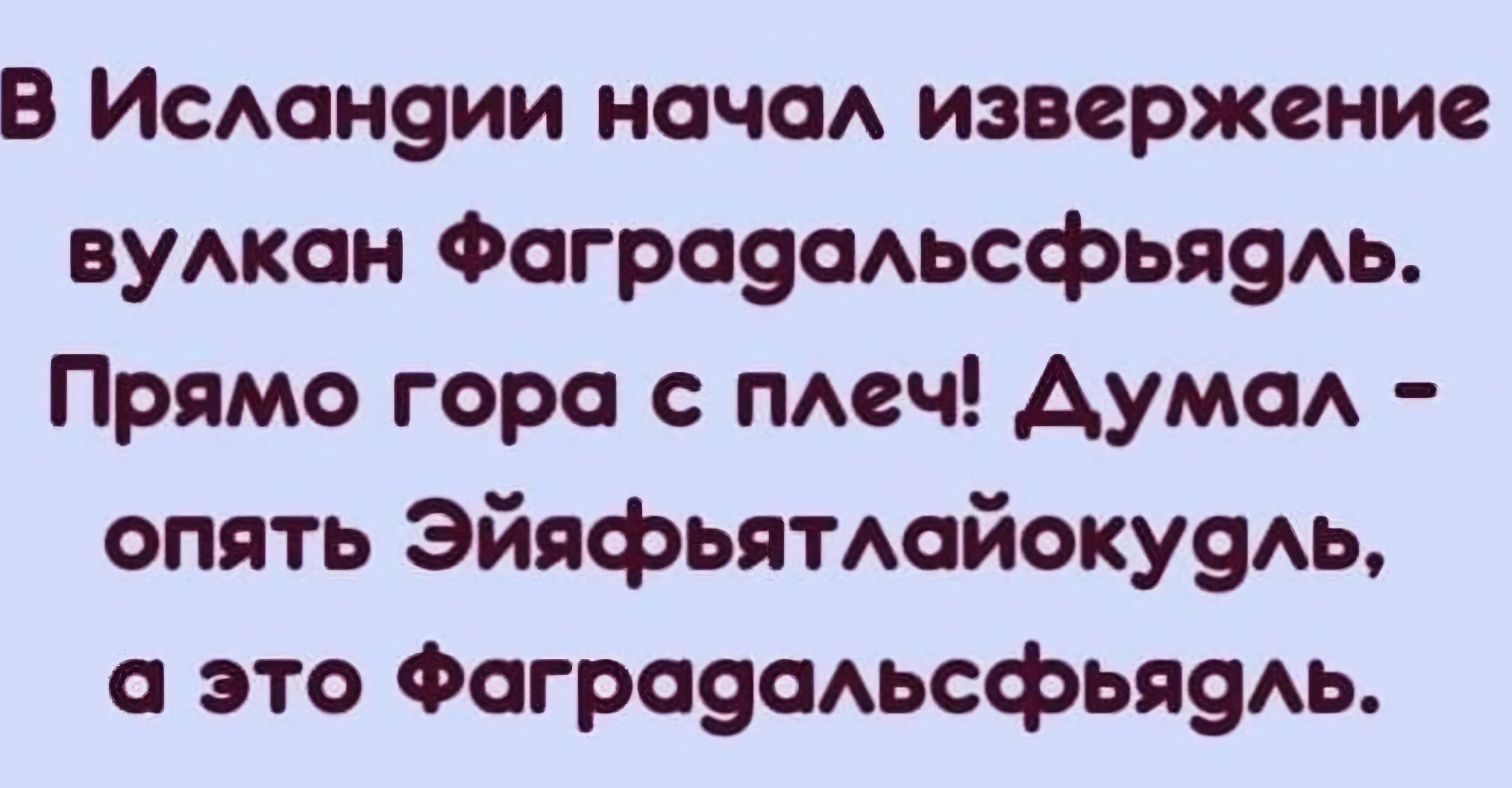Сколько не пыталась, так и не могу выговорить название вулкана Эйя...! А тут еще и невыговариваемый Фаг... тьфу!Интересно, кто-то может выговаривать эти "..ядли"!