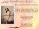 Вернемся к началу: Вы отрицаете то, что изображенная балерина может быть Истоминой, поскольку автор кросса изобразил ее в короткой пачке. Я правильно вас поняла? А как же :"я художник, я так вижу"или "я зритель, я так вижу"? Рисунок - это же не математическая, физическа или другая какая формула, которая может выглядеть только так и не иначе. С рисунком(картиной) все по другому -каждый видит в ней то или того, что подсказывает человеку его воображение. Обратите внимание, пожалуйста, например, на картины Н.Сафронова. На них изображены известные персоны. Но, поскольку они одеты в несвойственные им одежды, по-вашему получается, что это совсем не те персоны?