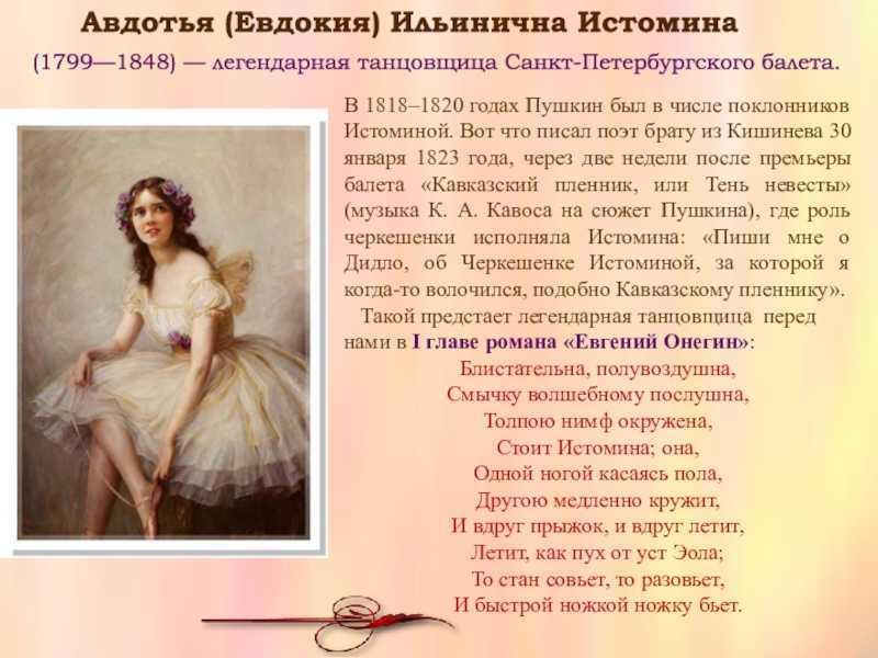 Вынужден Вас разочаровать. Истомина почти наверняка поднималась на пуанты, и есть её портрет с обнажённой грудью (одной ;) ). Но вот в короткой пачке она наверняка не танцевала!