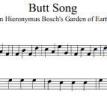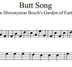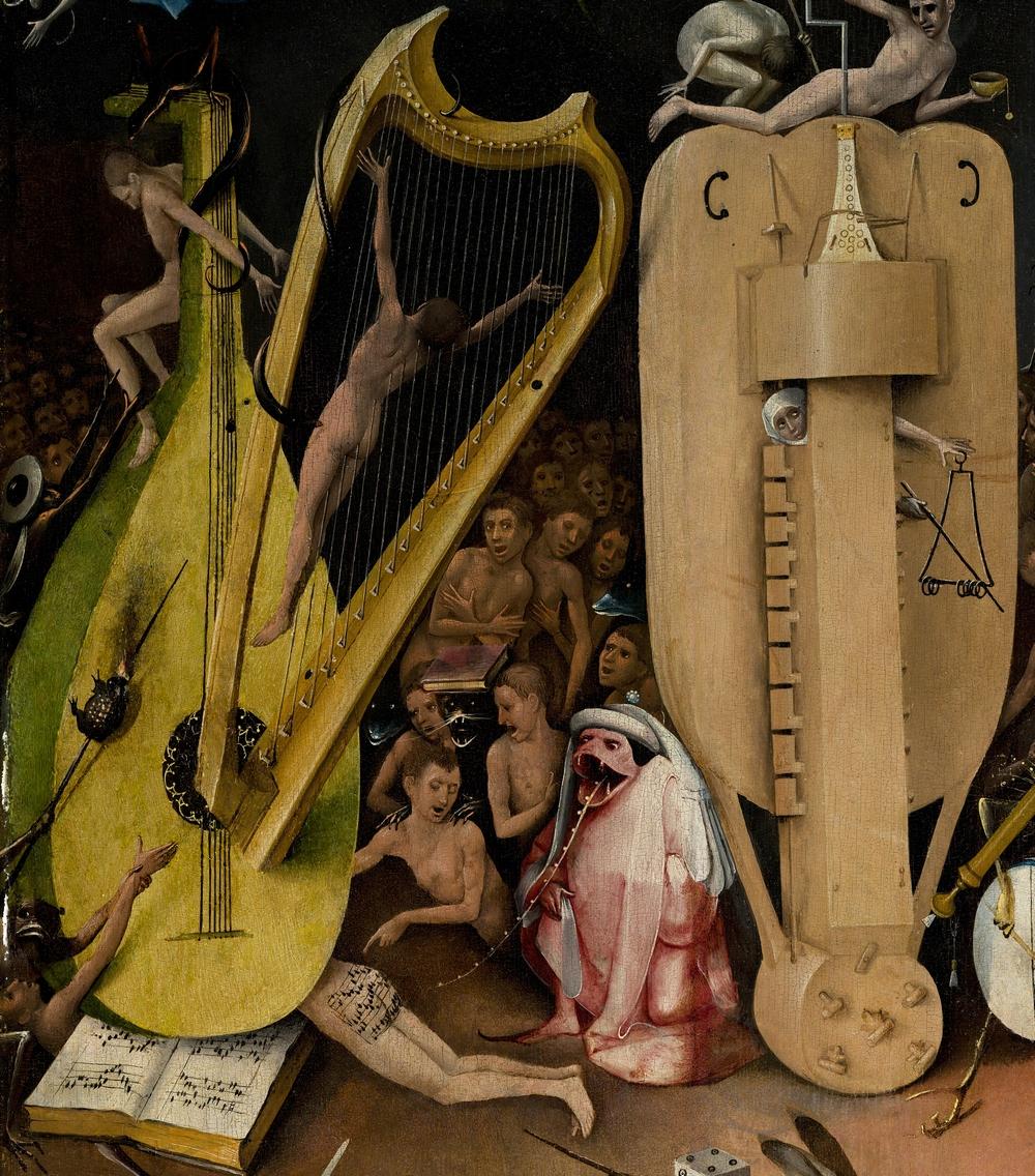 Хорошее портретное сходство. Конечно же, мне сразу вспоминается его знаменитый триптих "Сад земных наслаждений". Существует множество интерпретаций, что же изобразил художник? Но единой версии нет. Можно рассматривать бесконечно и разбираться, что же зашифровано во множестве персонажей и символов. Очень интересен фрагмент с нотами на ягодицах, он, конечно же, что-то символизирует. Но интересно еще и то, что существует версия исполнения мелодии, которую расшифровала студентка музыкального факультета университета Оклахомы Амелия Хендрик. Мне удалось прослушать эту мелодию)
