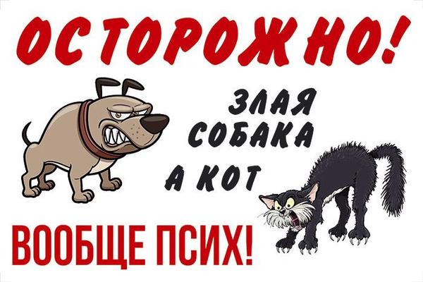 ответить"Осторожно ! Во дворе злая собака ! А кот вообще деБил !!!" )
