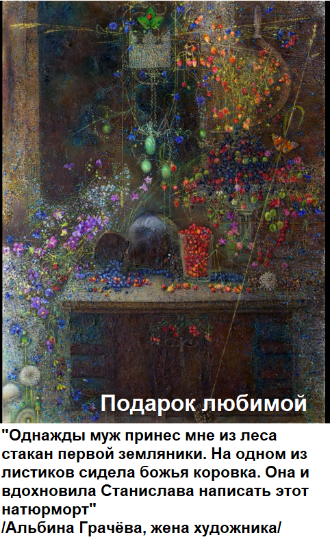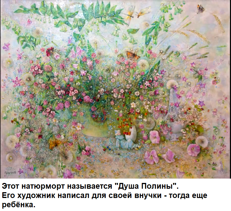 В названии натюрморта "Душа Полины" подсказка, отчасти объясняющая, почему романтические пейзажи и натюрморты Грачева так завораживающе прекрасны, необыкновенно нежны, загадочны и в то же время многозначительны. Потому что в них Душа и Любовь Художника...