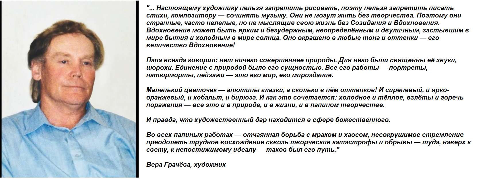 ... Три года назад в Ивановской художественной галерее «Классика» была открыта первая и пока что единственная персональная выставка Грачева. К сожалению – посмертная. Художник скончался за год до этого события...