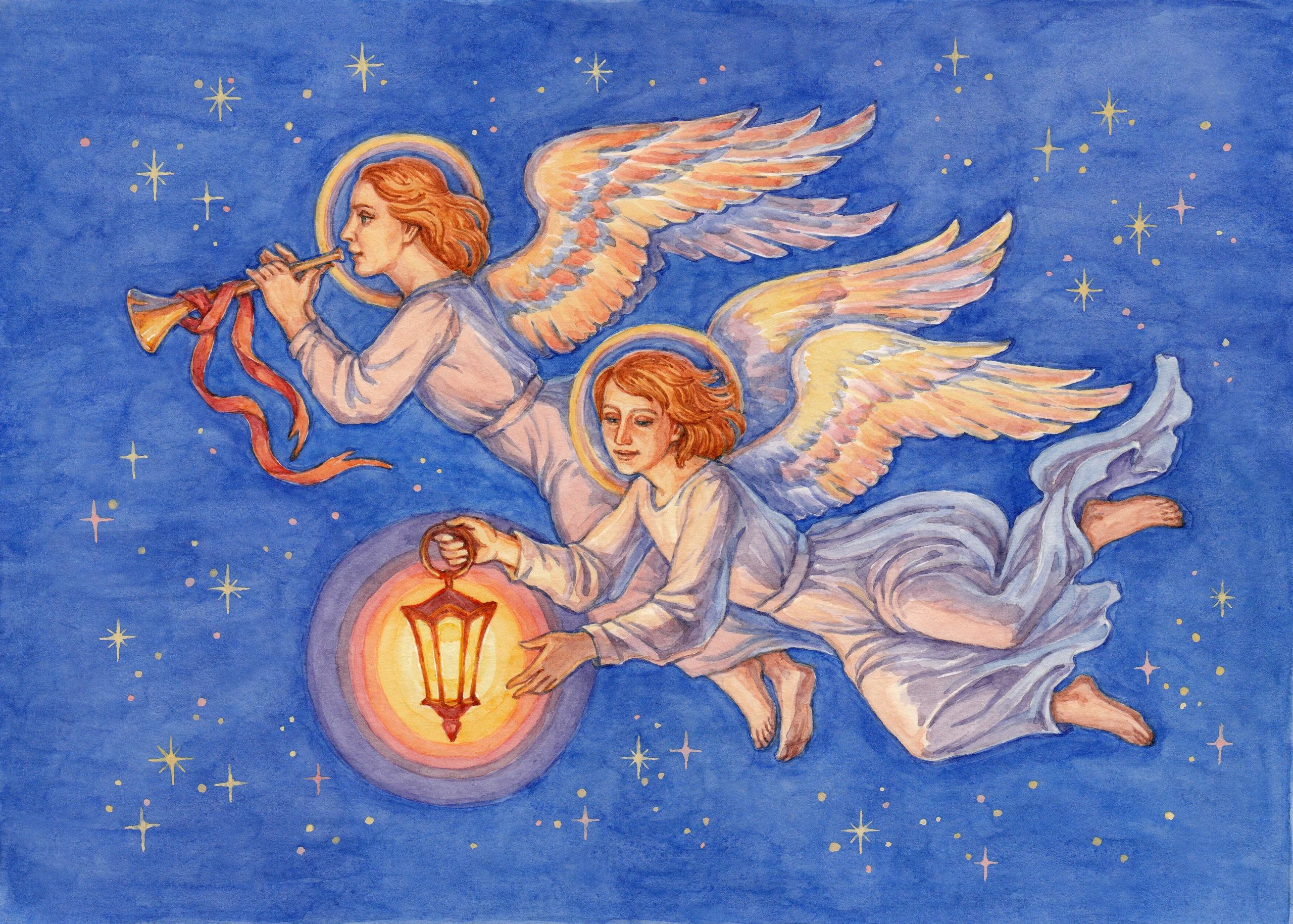 Нет, это не тот, который "несет миру весть о рождении Христа". Тот был без трубы)) Читайте первоисточник - Евангелие от Луки, 2-я глава)