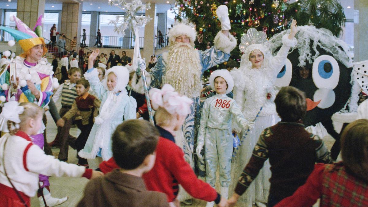 О, я Ваш кадр повторил! Что ж, посмотрите ещё раз: мальчик-Новый год. В количестве одна штука. Явно в скафандре. А шлем ему не положен - слишком тяжело, неудобно и т.д. Да и космонавты совсем не обязательно в шлемах.