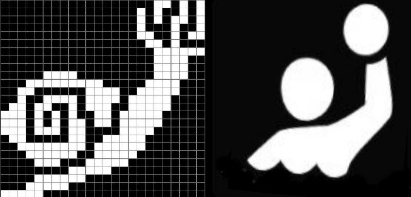Вот и я в процессе решения, думала, что это человек с поднятым кулаком (без мяча). Когда пошли завитушки, предположение о голове отпало! )))