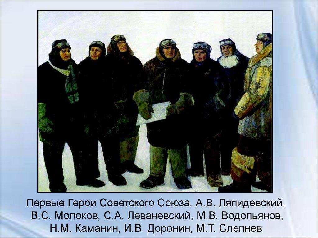 ответитьОдин из персонажей группового портрета Решетникова "Семеро первых", на котором изображены семь первых Героев Советского Союза - полярные летчики, спасавшие членов экспедиции затонувшего во льдах парохода "Челюскин". В этой экспедиции в качестве художника и корреспондента принимал участие и сам художник.