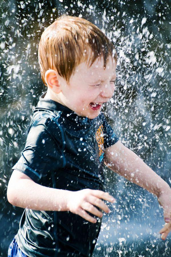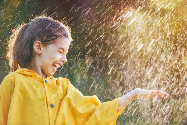 Не помню, чтобы дети улыбались во время дождя, разве что не смотрели в окно, занимаясь своими делами, и им было пофигу, что там происходит.