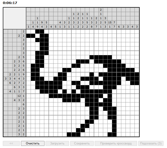 ответитьУ меня тоже шло очень туго. В каком-то месте ничего не могу сделать - пришлось брать подсказку. Но как только нарисовался хвост, картинка стала понятна, решалось на подъеме. Кому было легко, поделитесь, как вы начинали? А картинка просто отличная!
