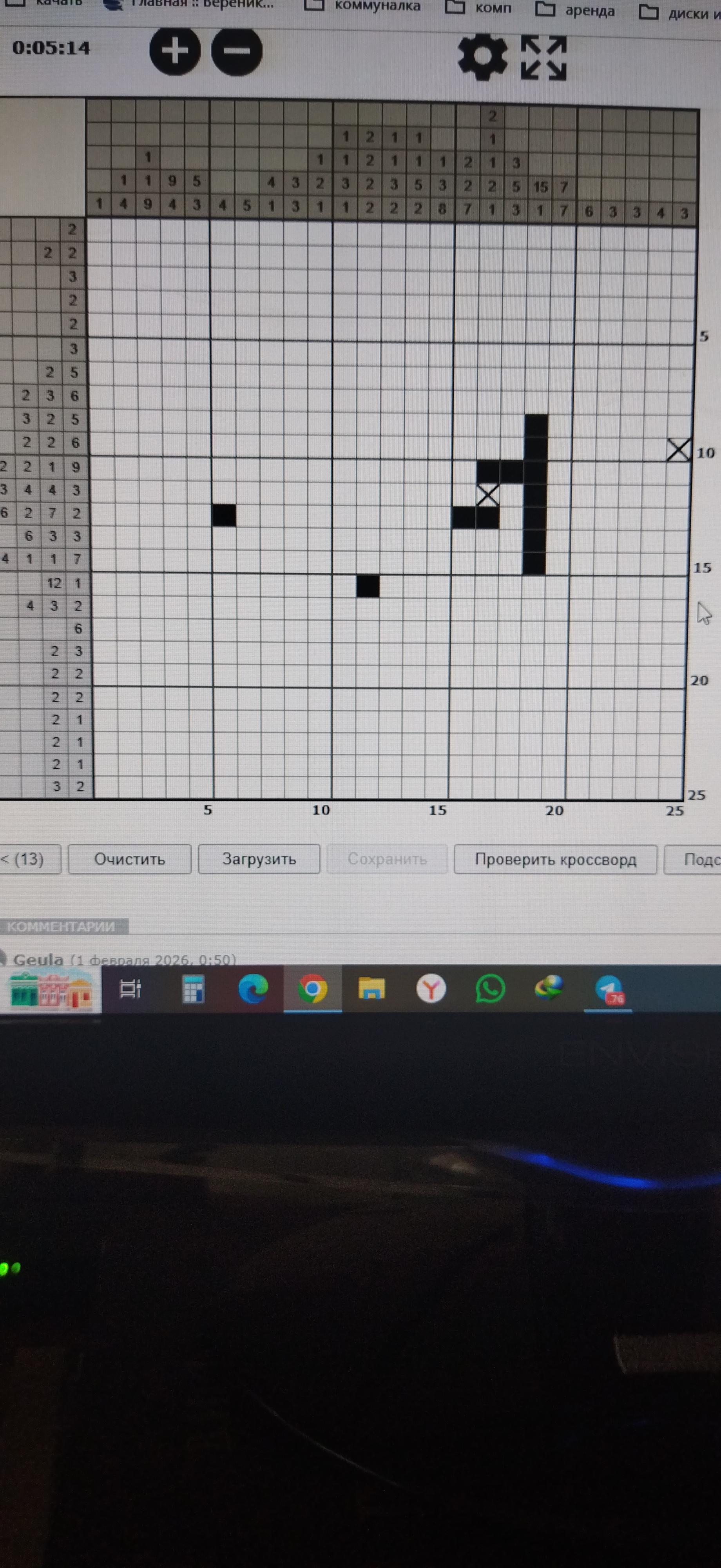 Огромное спасибо! Сейчас попробую все проделать заново! Вы - настоящий друг! Сейчас повторила все Ваши пункты - я так и делала, но как раз на 12 горизонтали просчиталась. И застопорилась. Еще раз огромное спасибо!!!
