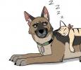 А собакен - надежный, добряга, котенка терпит, благоволит, сам рад, а мог бы и шугануть!