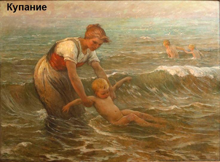 там просто у мамаш такие суровые и решительные лица, что никакие вопли младенца, цепляющегося за ее юбку, не в силах ее остановить, поэтому и возникает ощущение, что в задумках у нее отнюдь не гигиеническое купание)))