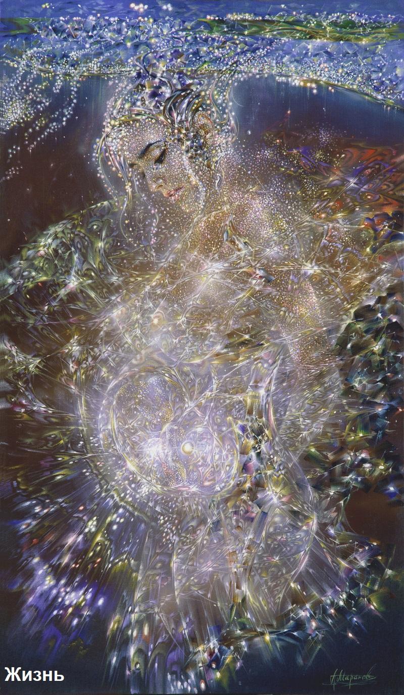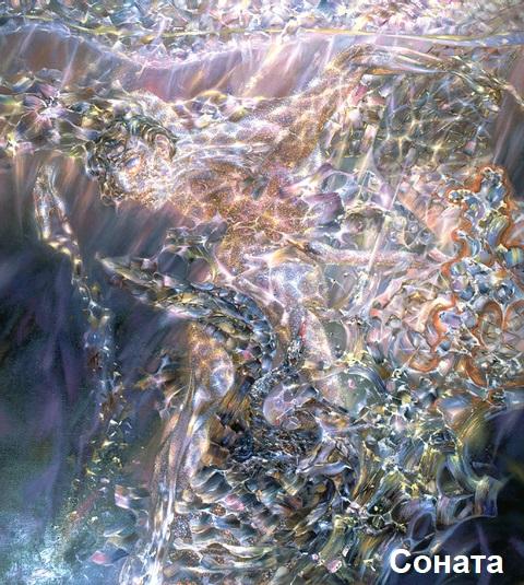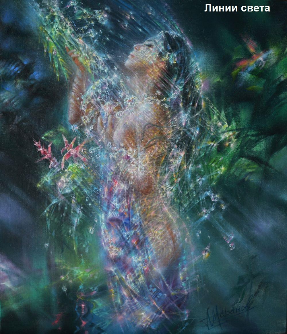 И теперь вот уже более 15 лет основой живописи Александра Маранова является движущийся свет, иногда взрывающийся фейерверком серебрящихся звездочек. Струящиеся потоки разливаются во всех направлениях по картинной плоскости и, утолщаясь, обретают формы и образы, затем вновь растворяются в пространстве. И зрителю кажется, будто мастер видит мир сквозь волшебный магический кристалл.