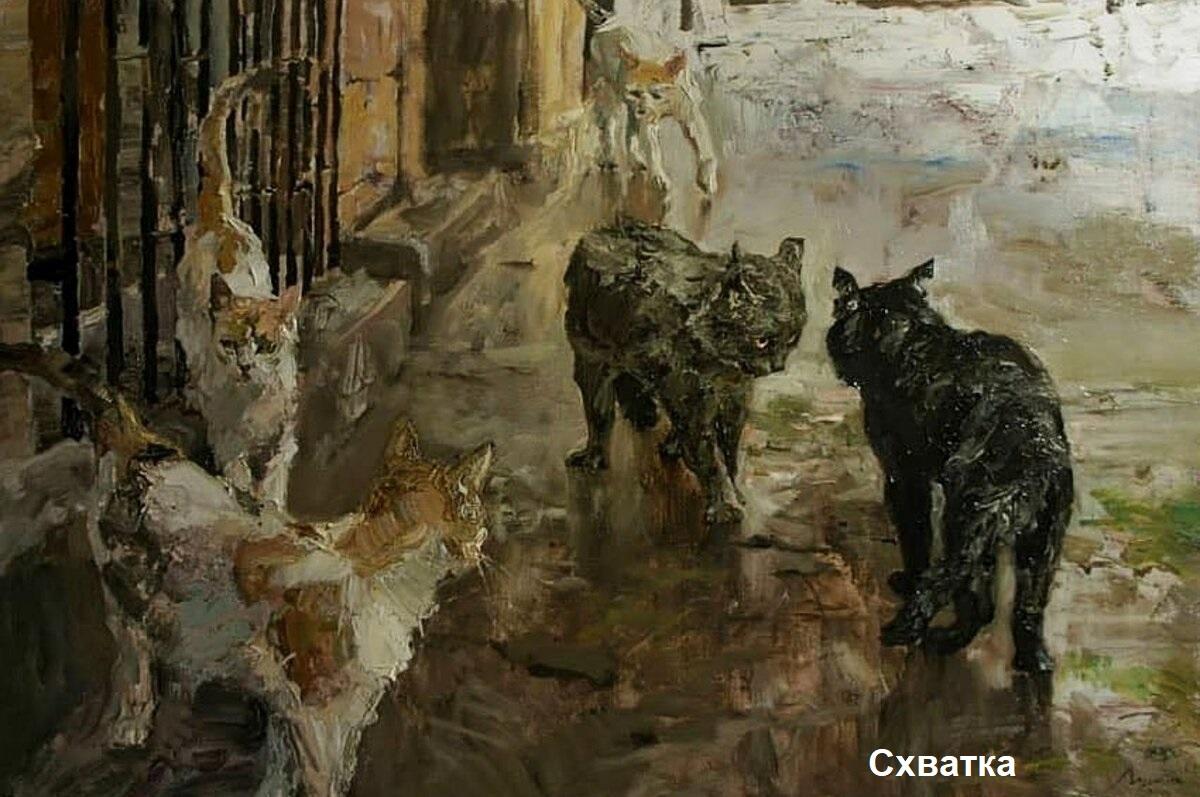 Для меня Константин Лупанов тоже открытие. Картины понравились своей повседневностью, в них много юмора, любви к близким, А коты везде такие разные, чувствуется, что он их очень любит.