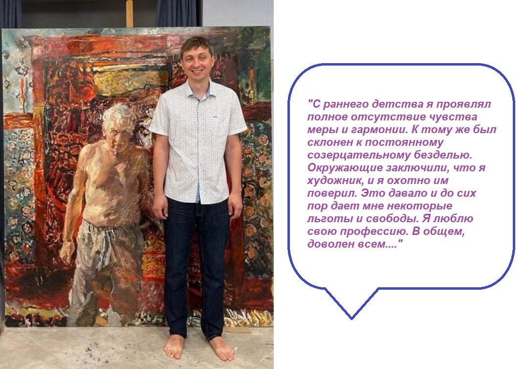 В уменьшенном формате художник на весело улыбается!