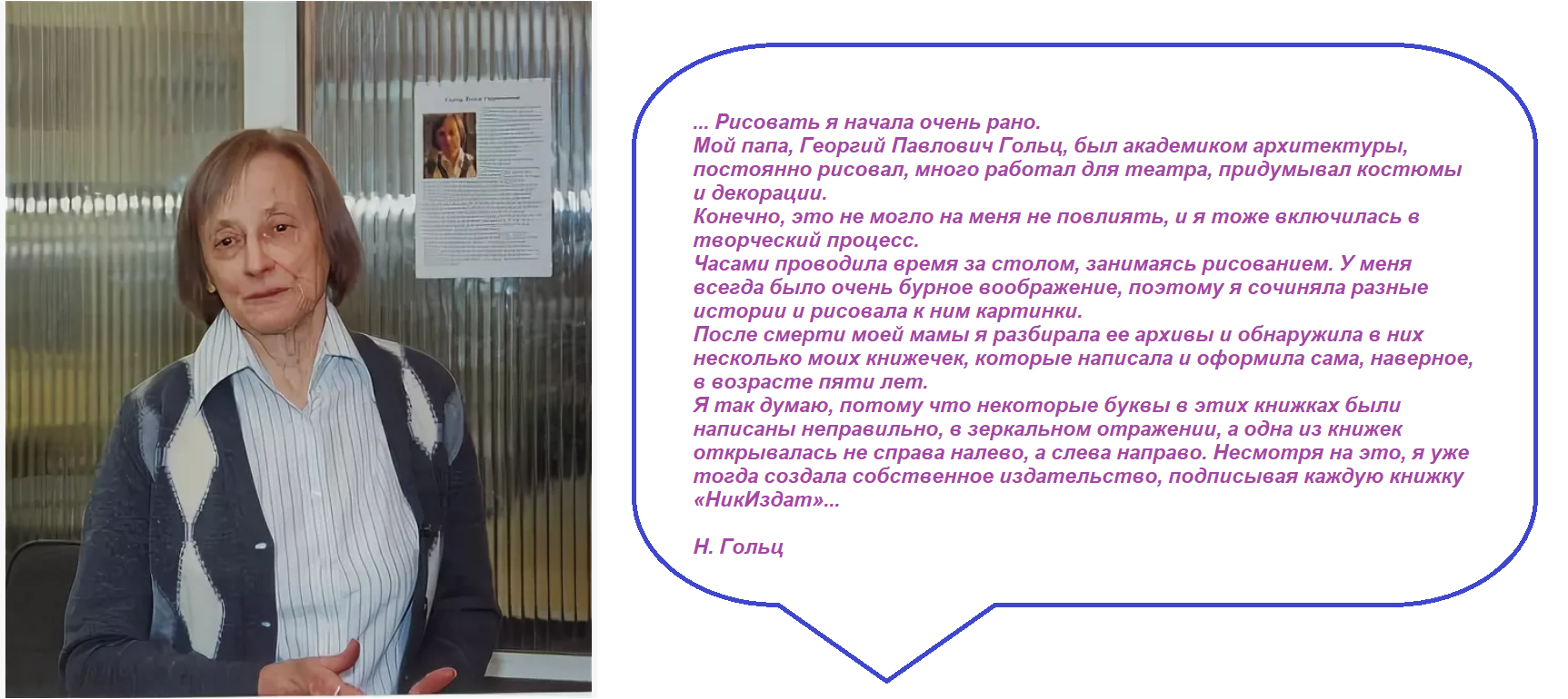 ... Ника Гольц пошла по стопам своего отца Георгия Гольца, театрального художника и графика, ученика В.А.Фаворского.