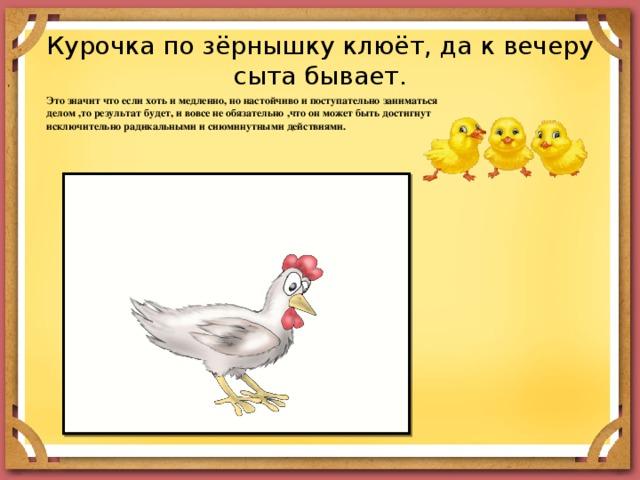 Курочка по зёрнышку клюёт, да к вечеру сыта бывает.