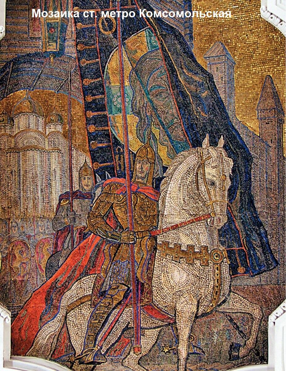 Однако и он ощутил на себе влияние соцреализма, создав серию живописных работ и фресок в этом стиле, а после войны возглавил создание мозаик московского метро. Корин создал мозаичные композиции на станциях метро Комсомольская кольцевая, Смоленская и Павелецкая, витражи и мозаичные панно на Новослободской, а также панно в актовом здании МГУ на Воробьевых горах.